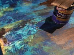 Using a thick grit sandpaper, start to work through the layers and let the colors begin to work with each other. I played with the motion of the sander in areas to almost smudge the colors together which some really cool effects.