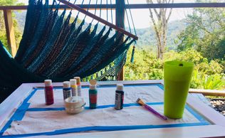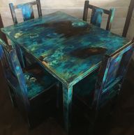 Take a boring table set and bring it to life. It starts with a simple yet sturdy piece of furniture. Get your painting palette of colors selected, being sure to think ahead about the layers!