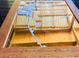 This beautiful mirror is a result of an unruly watermelon in the back of my car, which happens to role ever so perfexult to shatter the glass in a pattern which gave me inspiration. What could have been dumped is now being displayed. Here I began by piecing back together the shards of glass and gluing it back together using Rhino Glue.